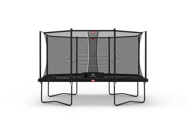Med Ultim Favorit 410 x 250, har BERG nå også en veldig fin rektangulær trampoline for de større hagene. Denne rektangulære trampolinen passer i alle hager på grunn av formen og den kompakte størrelsen på 410 x 250cm.
