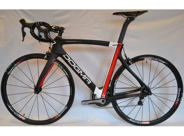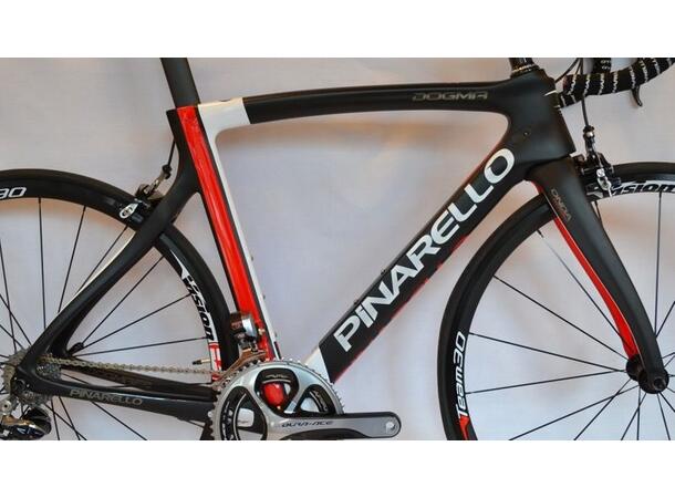 Pinarello Dogma F8 2016 sort / hvit / rød (farge 673), størrelse 53 cm (center-center mål). Fraktfri levering. Siste på lager.